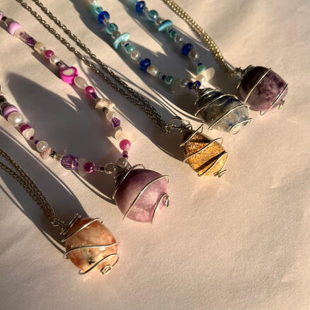 wire wrapping ethically sourced crystals for you to wear ~ they definitely adds spice to your fits! ⁽⁽ଘ( ˊᵕˋ )ଓ⁾⁾